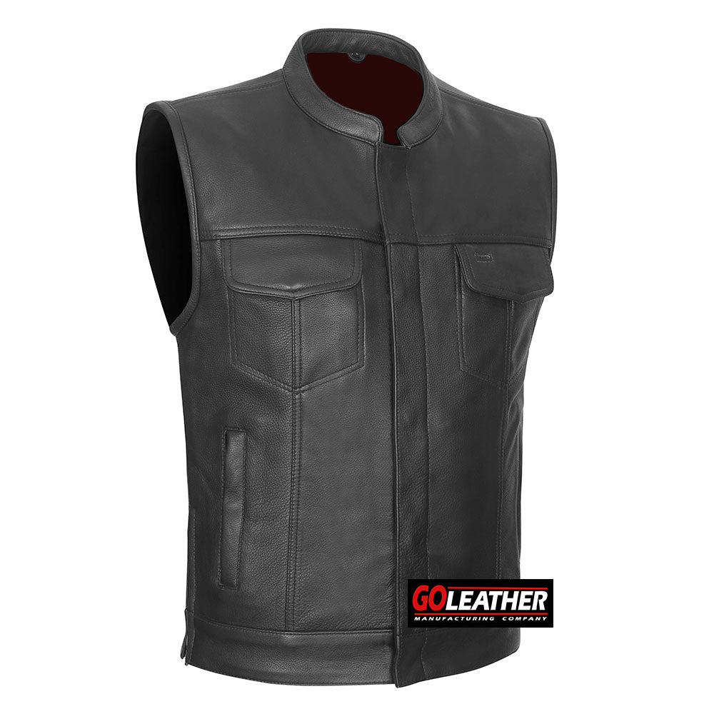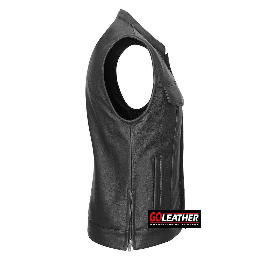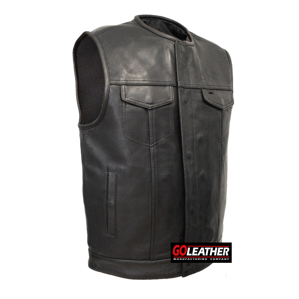 Are you looking for the absolute highest quality cowhide leather vest? In the industry this is called "Naked Cowhide Leather". This leather type is valued highest by consumers. It is a nice soft leather that feels natural to the touch. It's called "naked" because it has been dyed but no other treatments or finishes are applied. These leathers are hand selected for uniformity as only the highest quality hides can be used. Naked leathers are made from full grain leather hides which have not needed to be grain corrected. All naked cowhide vests are thick, soft, premium quality cowhide vests!